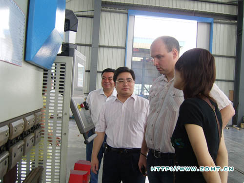 在中德公司領(lǐng)導(dǎo)的陪同下,尼爾森先生來到了我們的車間。尼爾森先生尤其關(guān)注數(shù)控類機(jī)床,對(duì)數(shù)控機(jī)床成品都一一細(xì)細(xì)查看。在正在生產(chǎn)中的大型數(shù)控雙機(jī)聯(lián)動(dòng)折彎機(jī)前,尼爾森表現(xiàn)出了極大的興趣,認(rèn)真的向負(fù)責(zé)人了解機(jī)器的情況。在大型裝配車間,尼爾森一行對(duì)中德車間的管理布局及環(huán)境表示了贊揚(yáng),雖然天氣很熱,干凈整潔的車間環(huán)境讓他們輕松地進(jìn)行參觀。另外,負(fù)責(zé)人還向他們介紹了產(chǎn)品設(shè)計(jì)方面的一些小細(xì)節(jié)如夾塊、T型槽等等,這些細(xì)節(jié)體現(xiàn)出了中德產(chǎn)品使客戶在使用產(chǎn)品過程中將會(huì)得到極大的便利。